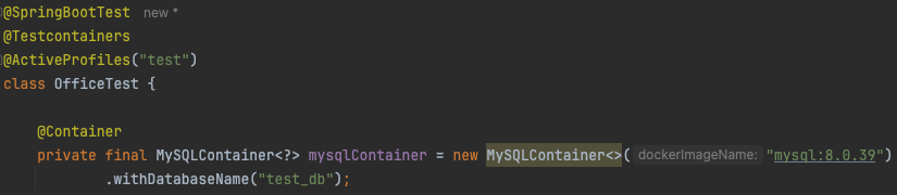 - jdbc:tc:mysql:8.0.39: 8.0.39 부분은 프로젝트에서 사용하는 MySQL 이미지 버전입니다. 다른 버전을 사용하신다면 사용하실 버전을 입력하시면 됩니다.