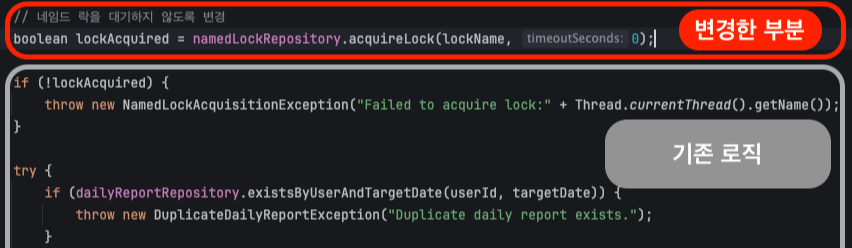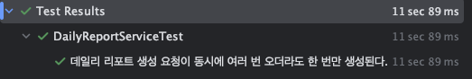 네임드 락을 획득한 첫 번째 스레드에서만 데일리 리포트를 생성하고, 커밋을 마쳤기 때문에 멀티 스레드 환경에서도 안전하게 트랜잭션을 수행할 수 있게 되었습니다.