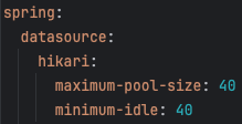 커넥션 풀 크기를 조절하는 방법은 이미지처럼 `application.yml`에서 간단하게 설정할 수 있습니다.