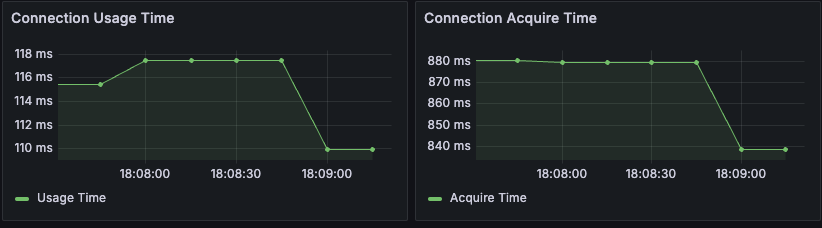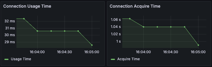 이유를 알기 위해 커넥션 사용 시간과 커넥션 획득 시간을 봅시다.