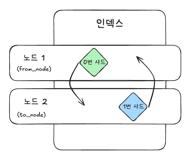 즉, 단순히 `es-1` 노드와 `es-2` 노드가 샤드를 교환하는 것으로 이해할 수 있습니다.