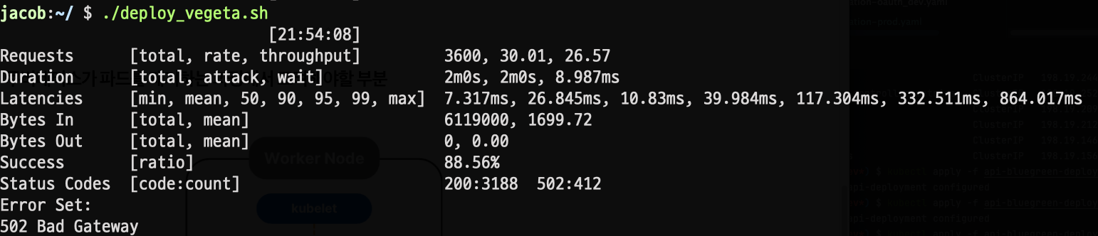 fail 11.78% (502 Bad Gateway 424회 / 전체 3600 요청)