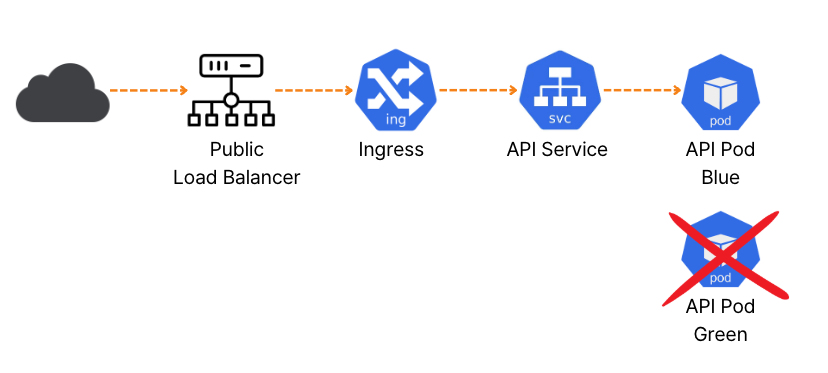 일정시간 동안 `Green` 버전으로 흐르는 트래픽이 정상적으로 처리되는 것이 확인되면 `Blue` 버전 파드를 제거합니다.