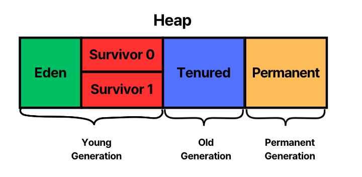 - Heap: JVM이 기동 될 때 생성되며, 모든 클래스의 인스턴스(객체)와 배열이 저장되는 영역이다. 이 영역 역시 스레드 간 공유되는 영역이며 GC(Garbage Collector)에 의해 관리된다.