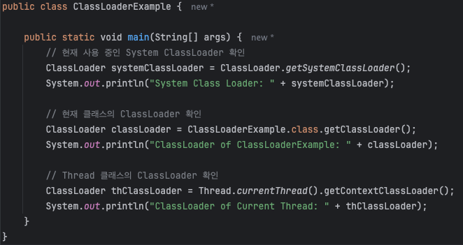 위의 예시 코드에선 바이트 코드에서 `new B()` 명령어를 발견했을 때가 클래스를 로드하는 시점이 되고, 클래스 로더에 클래스를 로드하라고 요청한다.