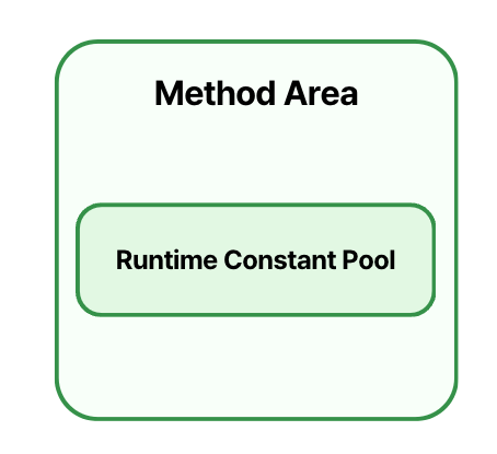 - Method Area: 클래스의 메타정보, Runtime Constant Pool, static Method, static Field 등이 저장되는 영역이다. JVM이 기동 될 때 생성되며, 스레드 간 공유되는 (논리적으로) Heap의 일부이다.