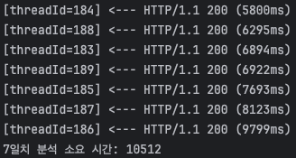 - 비동기 요청이 성공적으로 수행되었습니다. 비동기 요청마다 응답 받는 시간이 다름을 확인할 수 있습니다.